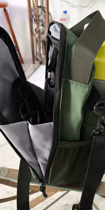 Stworzony dla osób aktywnych, LiftBag ułatwia organizację wszystkich akcesoriów treningowych dzięki uchwytom na magnez i przeznaczonemu miejscu na szelki.